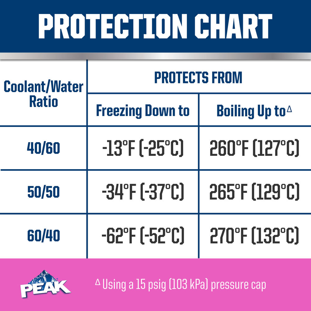 PEAK ORIGINAL EQUIPMENT TECHNOLOGY ANTIFREEZE + COOLANT for EUROPEAN VEHICLES - PINK meets the performance requirements of ASTM D3306 and BS 6580. With a complete flush and fill, PEAK guarantees this coolant will provide service life protection of up to 150,000 miles or 5 years. Use PEAK ORIGINAL EQUIPMENT TECHNOLOGY CONCENTRATE ANTIFREEZE + COOLANT to perform a complete flush/fill or top-off.