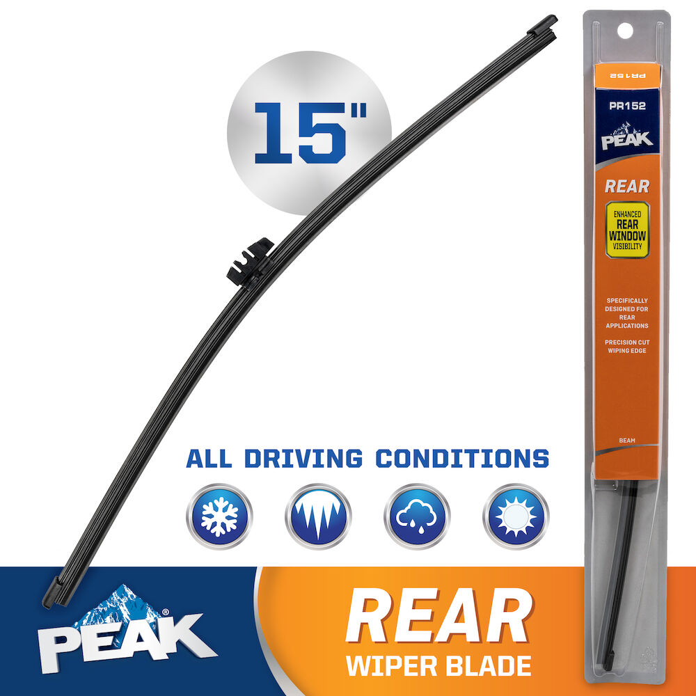 PEAK REAR wiper blades are designed to enhance rear window visibility in all driving conditions. These blades feature a precision cut wiping edge that delivers a problem-free wipe. PEAK offers a complete line of universal rear wiper blades to fit beam, integral and conventional wiper arms. Each blade is the same style as the originally installed rear blade that came with your vehicle. Installation is quick and easy with simple to follow instructions included in the package. Blades are available in lengths 10" to 16".